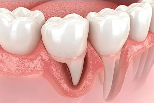 Убыль костной ткани распространяется на соседние зубы и их корни постепенно обнажаются!